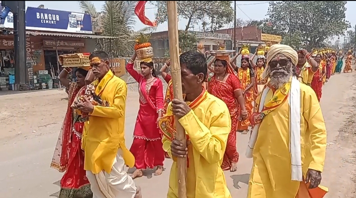 कोरबा : नगर निगम क्षेत्र के ग्राम दादरखर्द में संगीतमय श्रीमद् भागवत कथा ज्ञान यज्ञ का भव्य आयोजन किया जा रहा है। कथा प्रागण से 5 किलोमीटर में होकर कलश यात्रा निकाली गई। जिस में 551 कलश लेकर महिलाओ ने नाचते गाते और बजाते हुए बढ़चढ़ कर हिस्सा लिया। कलश यात्रा में लगभग पांच सौ से भी अधिक लोगो ने हिस्सा लिया। यह धार्मिक आयोजन 27 मार्च से 2अप्रैल 2026 तक प्रतिदिन आयोजित होगा।